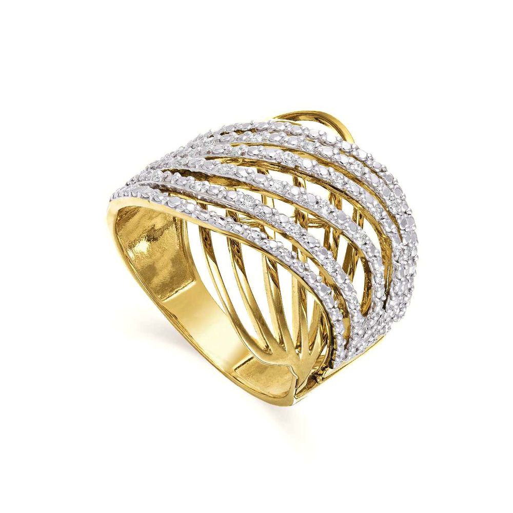 Anel Fios Em Ouro 18K (750) Com Diamantes Tamanho 16