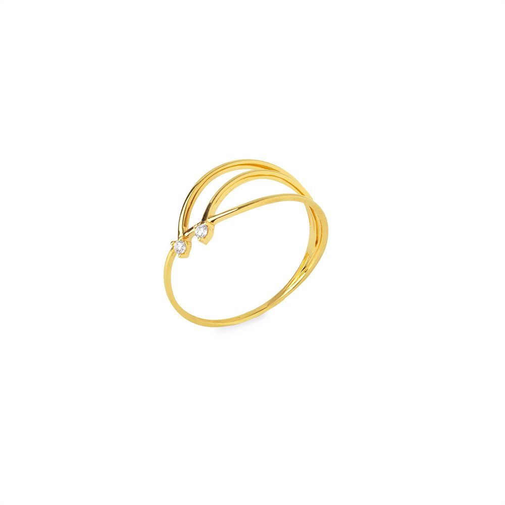 Anel Porto Três Fios Ouro 18k E Zircônia