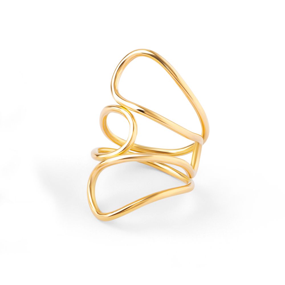 Produzido em ouro 18k, metal nobre reconhecido pela durabilidade e pelo brilho característico, o anel combina estrutura tubular com volumes suaves que envolvem o dedo com conforto e fluidez. O resultado é uma joia que une escultura e joalheria fina, ideal para quem aprecia peças com identidade e estética moderna.