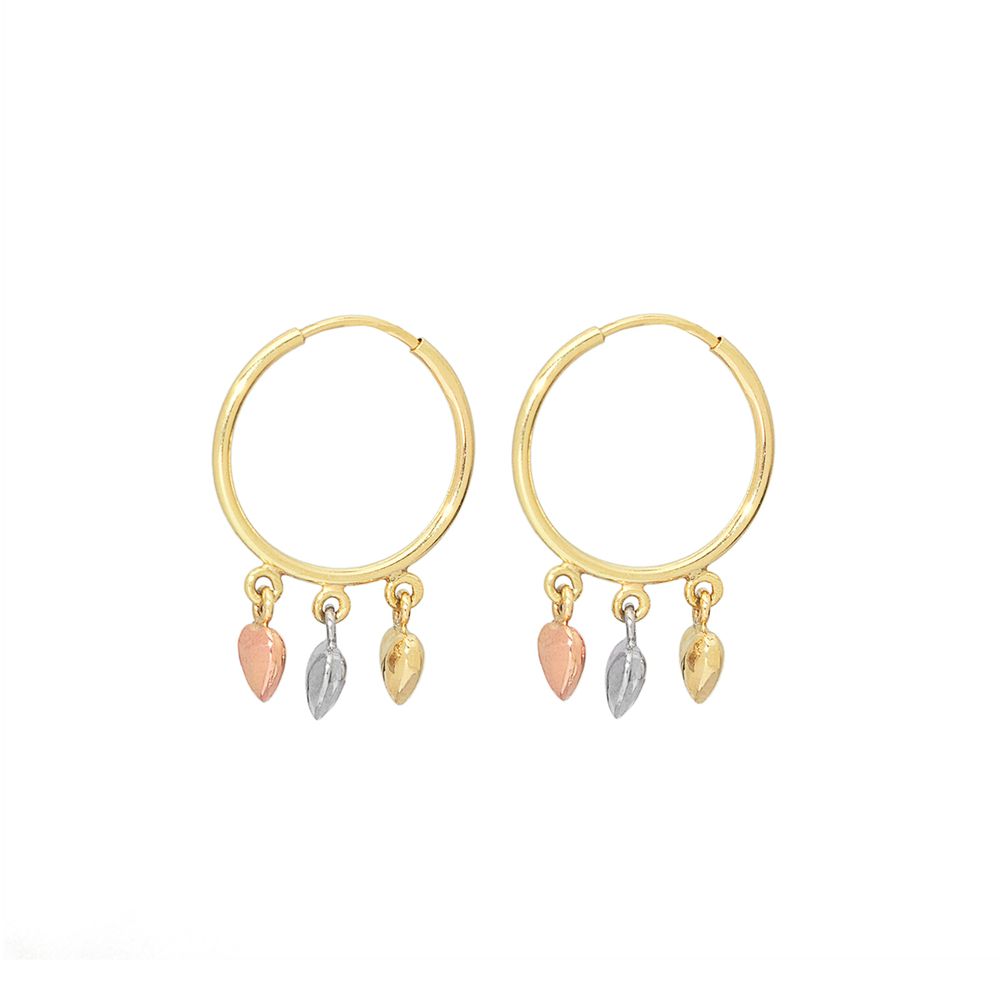 Brinco Argola Ternura Três Corações Ouro 18k - BRINCO ARGOLA TERNURA TRÊS CORAÇÕES OURO 18K