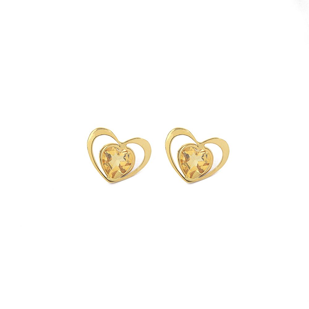 Brinco Coração Com Citrino Ouro 18k - BRINCO CORAÇÃO COM CITRINO OURO 18K