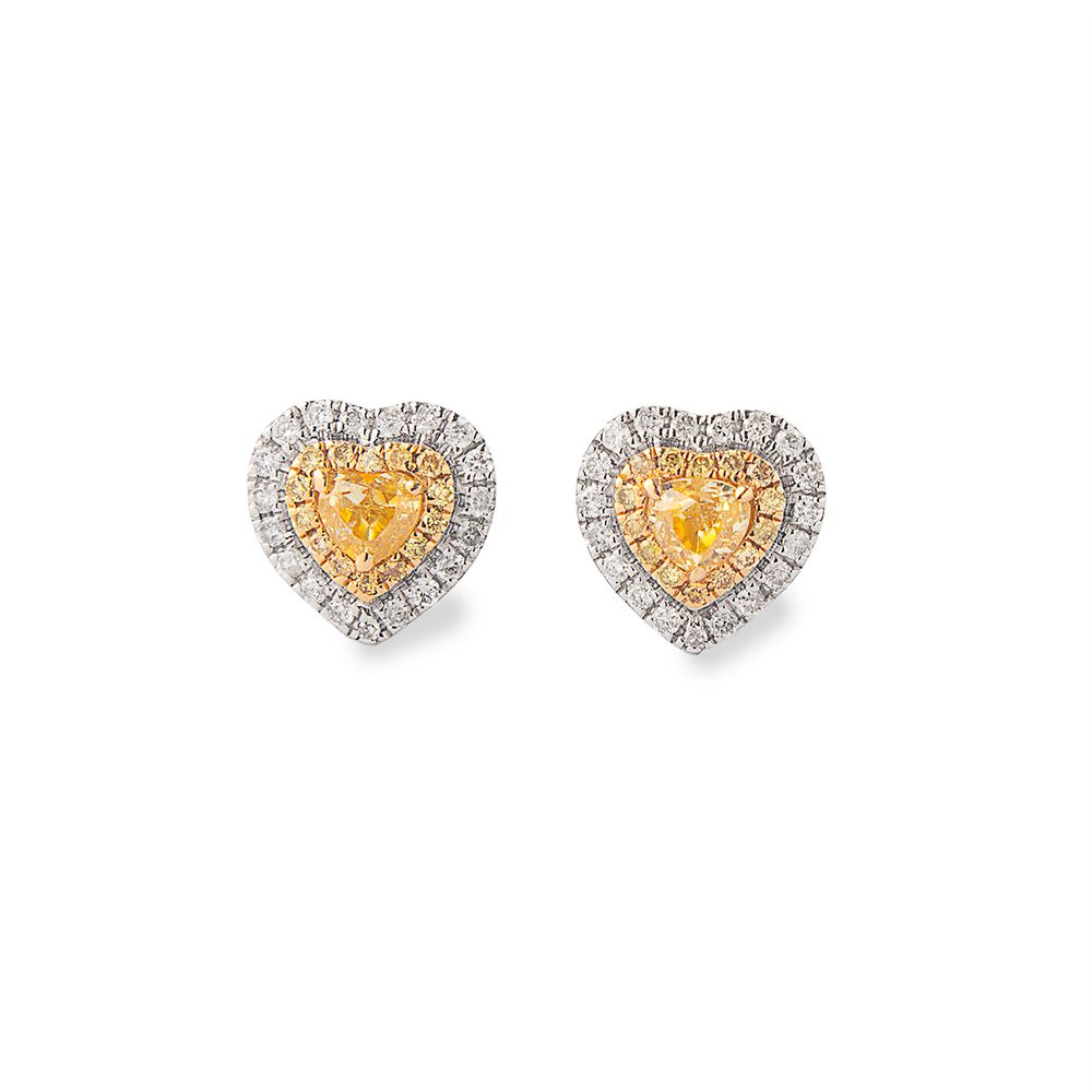 Brinco Coração Diamante Amarelo Ouro Branco 18k. Acompanha Certificado de Garantia, Embalagem Original e Nota Fiscal. Peso 1,6grAprox, Altura 6mmAprox, Largura 7mmAprox, Tarraxa Chupeta. Diamante com total 0,50ct