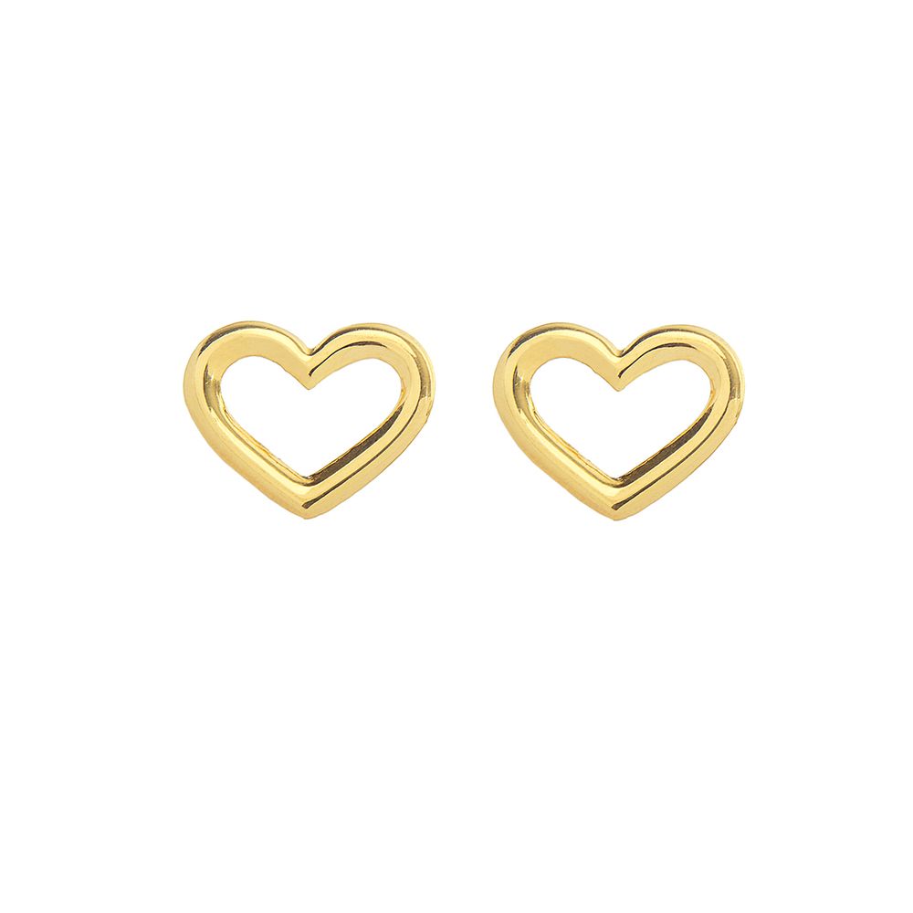 Brinco Singular Coração Liso Vazado Ouro 18k - BRINCO SINGULAR CORAÇÃO LISO VAZADO OURO 18K