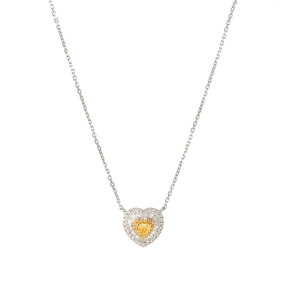 Colar Coração Diamantes Amarelos Ouro Branco 18k - Tamanho U