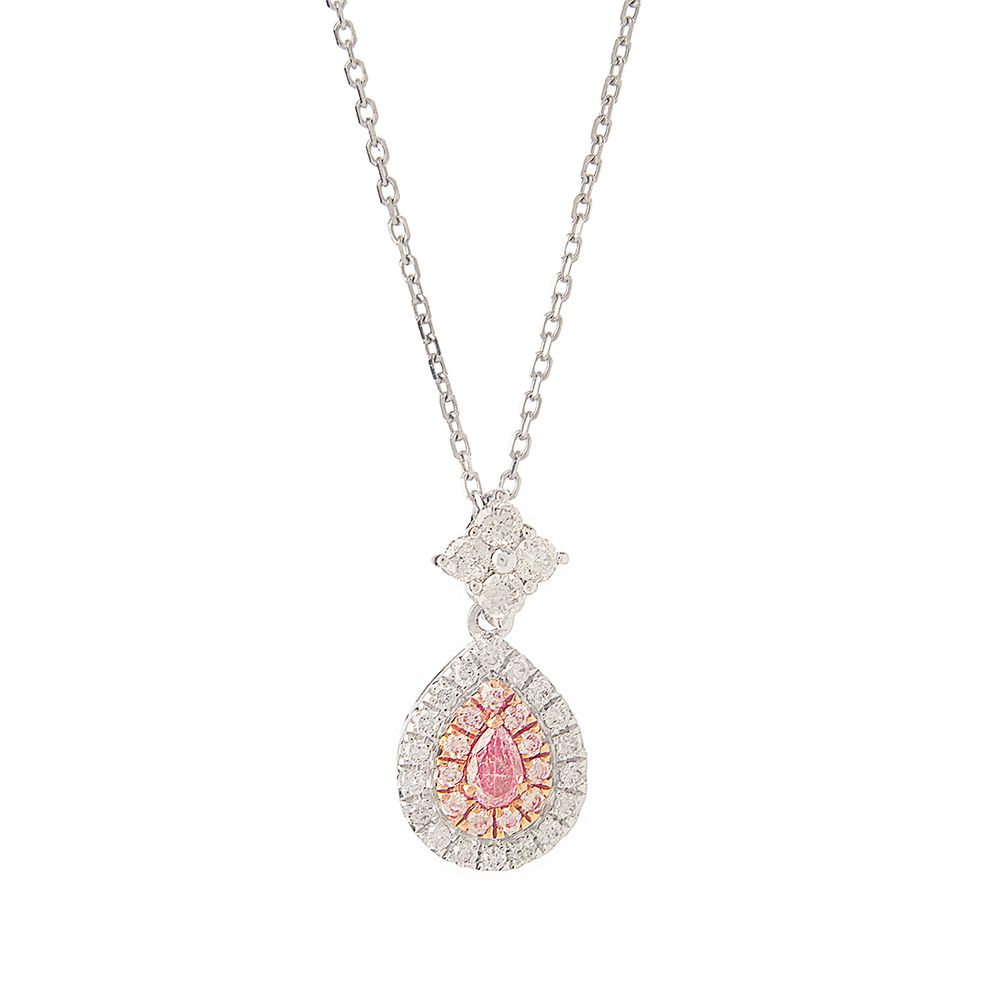 Colar Gota Diamantes Rosas Ouro Branco 18k - Tamanho U