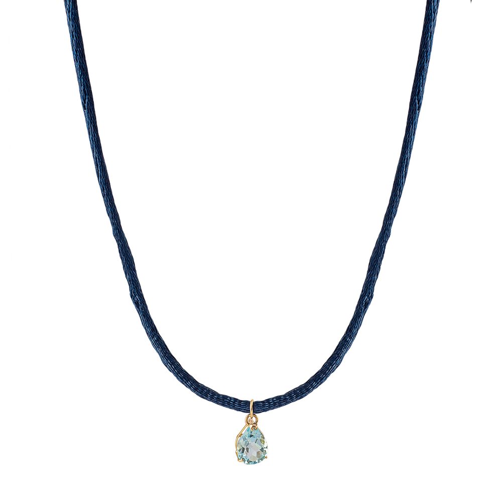 Colar Paz Fio Seda Gota Topázio Azul