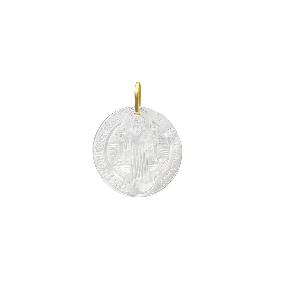 O Pingente Origem Madrepérola São Bento em Ouro 18k da Lulean Joias traduz a união entre tradição, fé e sofisticação em uma joia de significado profundo. Produzido em ouro 18 quilates e realçado pela delicadeza natural da madrepérola, este pingente apresenta a representação de São Bento, símbolo reconhecido de proteção espiritual e força interior, tornandose uma peça de valor simbólico e estético atemporal.