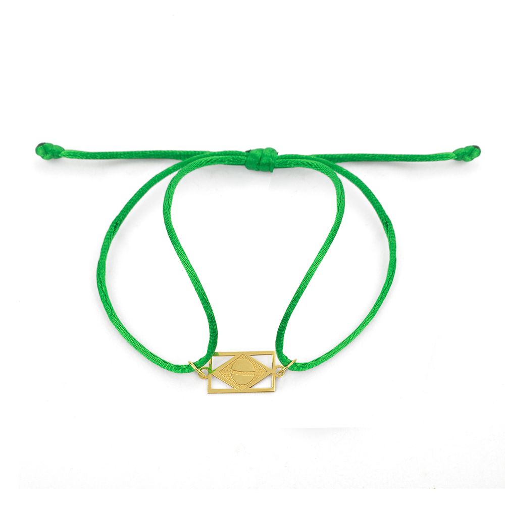 A Pulseira Pátria Fio Seda Verde Bandeira Brasil em Ouro 18k da Lulean Joias traduz elegância e identidade em uma composição refinada que valoriza o simbolismo nacional com sofisticação. Desenvolvida com fio de seda em tom verde bandeira e acabamento em ouro 18k, a peça estabelece um equilíbrio entre leveza e presença, resultando em um acessório de estética contemporânea com forte significado cultural.