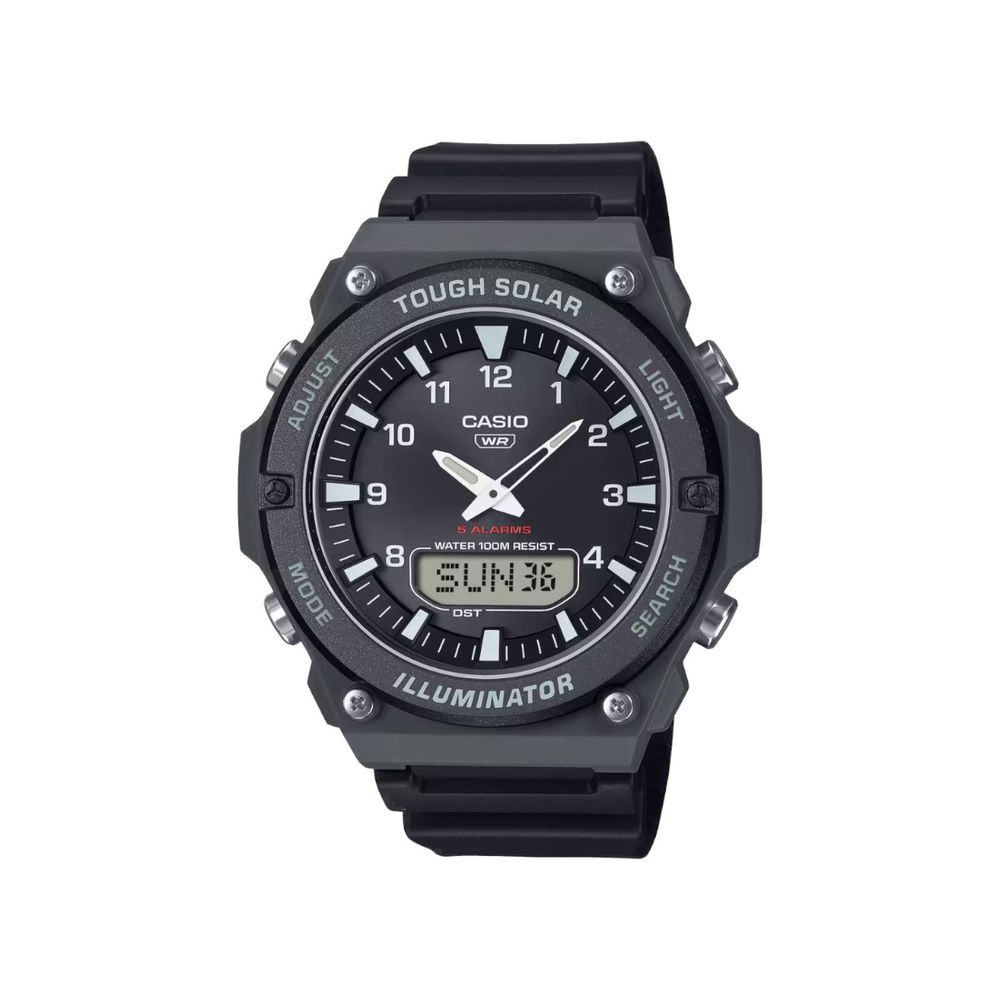 O Casio AQS820W1AVDFSC integra o melhor da tecnologia moderna e da tradição relojoeira, com movimento quartz alimentado por energia solar sistema Tough Solar e exibição analógicadigital AnaDigi. Sua caixa e pulseira em resina garantem leveza e conforto no uso diário, enquanto o mostrador preto e o vidro de resina asseguram excelente legibilidade. A resistência à água de 10 ATM torna este relógio adequado tanto para uso urbano quanto para atividades ao ar livre. Em termos de funcionalidade, este modelo oferece hora mundial em 31 fusos 48 cidades Tempo Universal Coordenado, opção de alternar entre cidade local e hora mundial, ativação ou desativação de horário de verão, cronômetro com precisão de 1/100 de segundo, calendário automático completo até o ano 2099, cinco alarmes diários, sinalização a cada hora, indicador de carga da pilha e função de economia de energia. A iluminação LED laranja garante leitura em ambientes com pouca luz. Compacto e funcional, o Casio AQS820W1AVDFSC acompanha certificado de garantia, manual de instruções, embalagem original e nota fiscal trazendo segurança e confiança na compra.Com seu movimento solar quartz e múltiplas funções de tempo e controle, este relógio é ideal para quem busca praticidade, confiabilidade e versatilidade todos os dias.Relógio Casio AnaDigi Iluminador LED Masculino AQS820W1AVDFSC. Acompanha Certificado de Garantia, Manual de Instruções, Embalagem Original e Nota Fiscal. Analógico, Digital, Caixa Resina, Pulseira Resina, Mostrador Preto, Vidro Resina, Hora Mundial,31 Fusos Horários 48 cidades tempo universal coordenado, Ativação/desativação de Horário de Verão, Troca de Cidade local/cidade da Hora Mundial, Cronômetro, Iluminação de LED, LED Laranja, Calendário Automático Completo até o ano de 2099, Economia de Energia, Indicador de Carga da Pilha, 5 Alarmes Diários, Sinalização a Cada Hora, Movido a Energia Solar, Resistência à Água 10ATM, Caixa medindo 52.5 50.1 12.7mm Aprox.