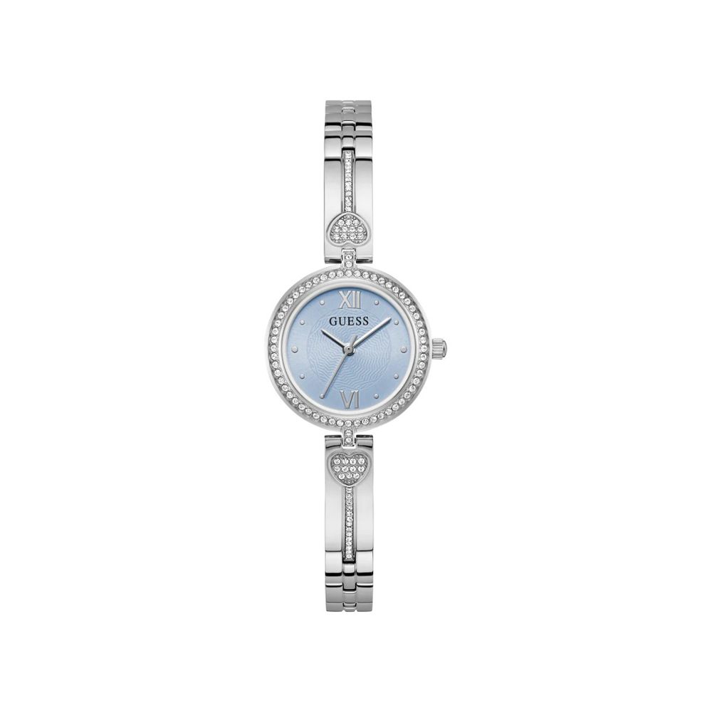 Equipado com movimento quartz analógico, o relógio oferece precisão confiável e praticidade no uso cotidiano. O mostrador azul imprime personalidade à peça, criando contraste harmonioso com a caixa e a pulseira em aço inoxidável com aplicação de cristais. A caixa com aproximadamente 27 mm proporciona ajuste confortável ao pulso, mantendo uma estética equilibrada e feminina.