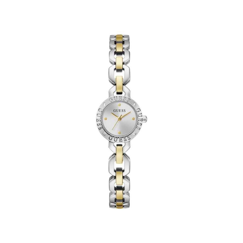 O Relógio Guess Feminino GW1019L3 traduz a elegância contemporânea da Guess, integrando uma linha fashion que valoriza proporções delicadas e acabamento refinado. Com aplicação de cristais na caixa e pulseira em aço inoxidável mista, o modelo apresenta uma composição harmoniosa entre tons metálicos, criando um visual sofisticado e versátil.