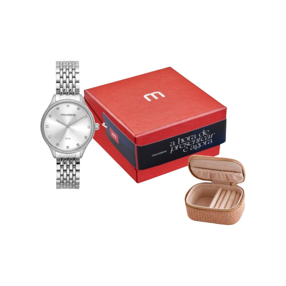 O Relógio Kit Mondaine Feminino 32783L0MKNE2K1 representa uma expressão de sofisticação dentro da coleção feminina da Mondaine, marca reconhecida pela tradição em relógios analógicos de alta confiabilidade. Equipado com movimento quartz, este relógio proporciona precisão no acompanhamento das horas, assegurando performance consistente e uso intuitivo no cotidiano. Desenvolvido com caixa e pulseira em aço inoxidável, o mostrador prateado confere um equilíbrio visual elegante, enquanto o vidro em cristal mineral oferece proteção eficaz contra riscos e impactos leves. A resistência à água de 5 ATM amplia sua versatilidade, permitindo resistência a respingos e exposição moderada à umidade sem comprometer o funcionamento do mecanismo. Com caixa medindo aproximadamente 32 mm, este relógio equilibra presença e proporção no pulso, adequandose a composições que transitam entre ocasiões formais e contextos do dia a dia. A pulseira em aço inoxidável complementa a estética refinada da peça, resultando em um acessório que realça o visual com presença e harmonia. O kit acompanha um portajoias exclusivo, pensado para organizar e proteger suas peças com praticidade e estilo. Além disso, você recebe o certificado de garantia, manual de instruções, embalagem original e nota fiscal, garantindo uma experiência de compra completa e segura com a Lulean Joias. Relógio Kit Mondaine Feminino 32783L0MKNE2K1. Acompanha Certificado de Garantia, Manual de Instruções, Embalagem Original e Nota Fiscal. Analógico, Caixa Aço Inoxidável, Pulseira Aço Inoxidável, Mostrador Prateado, Vidro Cristal Mineral, Resistência a Água 5ATM, Caixa medindo 32mm Aprox.. Acompanha 1 Porta Jóias