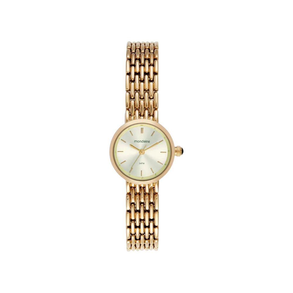 O Relógio Mondaine Feminino 32868LPMVDM1 é uma expressão clássica da expertise relojoeira da Mondaine, referência em relógios com acabamento refinado e performance confiável. Integrando a linha tradicional da marca, este modelo funciona com movimento a quartzo analógico, tecnologia consagrada por sua precisão consistente e manutenção prática ao longo do tempo um atributo presente na maior parte dos relógios da Mondaine. Com caixa em aço inoxidável de aproximadamente 23 mm, este relógio feminino apresenta um mostrador champagne que valoriza a leitura das horas com sutileza e elegância. A pulseira em aço inoxidável dourado confere unidade visual à peça, enquanto o vidro em cristal mineral protege o mostrador contra riscos e impactos leves, mantendo a estética impecável mesmo com o uso diário. A resistência à água de 5 ATM 50 m permite que o relógio suporte situações cotidianas como respingos e exposição à chuva passageira com tranquilidade, sem comprometer sua estrutura. O fecho metálico garante ajuste seguro no pulso e conforto ao longo do uso, ideal para quem valoriza acessório que combina funcionalidade e presença refinada. Este modelo é entregue com certificado de garantia, manual de instruções, embalagem original e nota fiscal, assegurando procedência e suporte completo pósvenda. O Relógio Mondaine 32868LPMVDM1 se destaca na categoria Relógios Mondaine da Lulean Joias como uma escolha atemporal que eleva qualquer composição com harmonia entre técnica confiável e apelo estético clássico.Relógio Mondaine Feminino 32868LPMVDM1. Acompanha Certificado de Garantia, Manual de Instruções, Embalagem Original e Nota Fiscal. Analógico, Caixa Aço Inoxidável, Pulseira Aço Inoxidável, Mostrador Champagne, Vidro Cristal Mineral, Resistência à Água 5ATM, Caixa medindo 23mm Aprox.