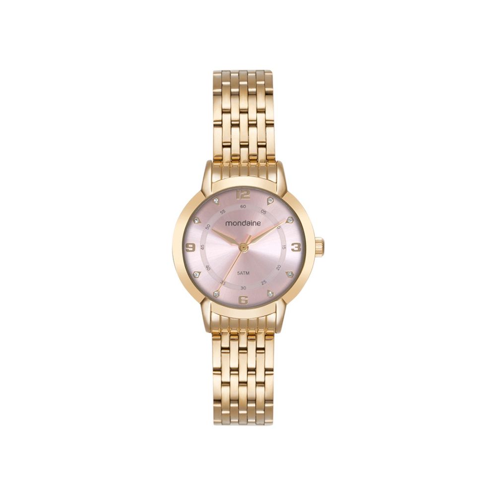A caixa em aço inoxidável com 32 mm de diâmetro reafirma sua proposta de leveza e versatilidade, enquanto o mostrador em tom rosa adiciona um toque de feminilidade refinada. A pulseira de aço inoxidável oferece durabilidade e visual coeso. O vidro em cristal mineral protege com resistência contra riscos leves e mantém a clareza da leitura. Com resistência à água de 5 ATM, suporta respingos, chuva e uso eventual próximo a água, sem comprometer seu funcionamento.