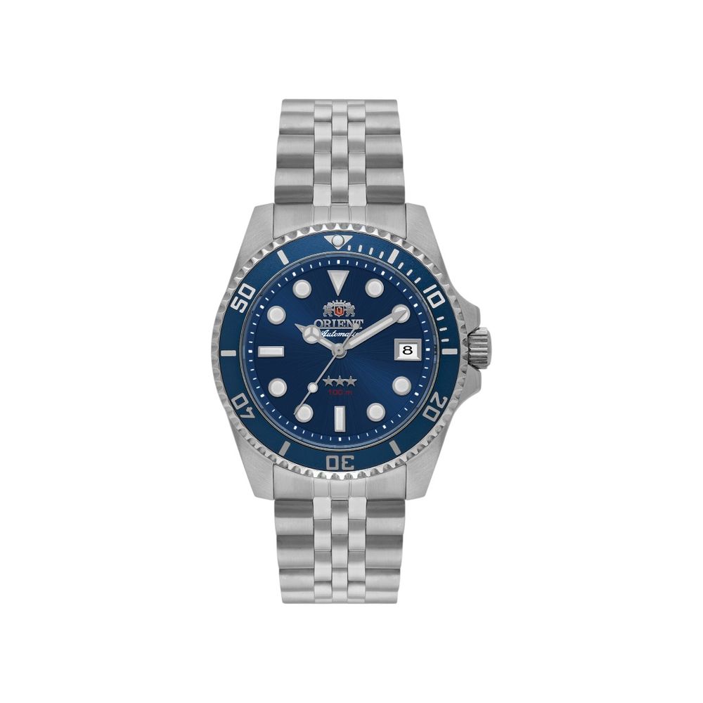 Seu mostrador azul profundo confere personalidade ao conjunto, criando contraste harmonioso com os índices e ponteiros, favorecendo a leitura clara das horas. A caixa e a pulseira em aço inoxidável reforçam a robustez e a durabilidade da peça, enquanto o aro rotativo unidirecional adiciona um elemento técnico essencial ao estilo diver. O vidro em cristal de safira proporciona maior resistência a riscos, mantendo a aparência preservada mesmo com o uso contínuo.