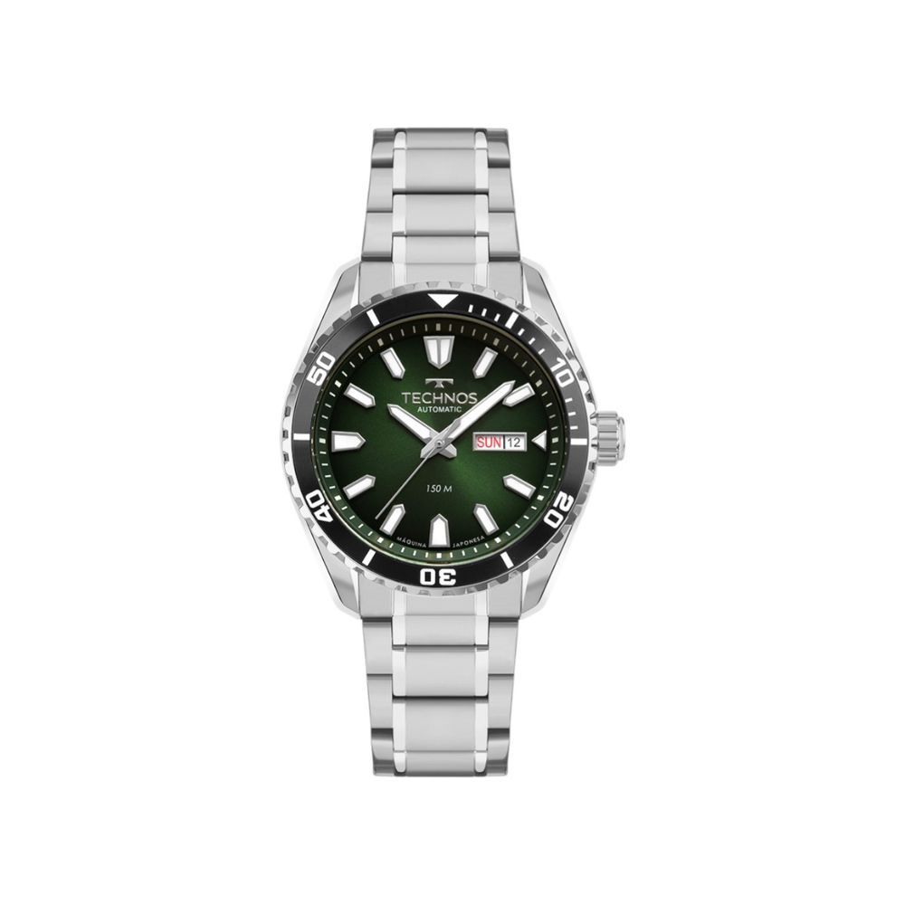 Pertencente à linha Technos Automatic, este relógio reflete o compromisso da marca com a engenharia relojoeira e a confiabilidade dos mecanismos automáticos. Sua construção em aço inoxidável, tanto na caixa quanto na pulseira, proporciona resistência e conforto, enquanto o aro giratório unidirecional com aplicação reforça sua vocação para atividades dinâmicas. A coroa rosqueada amplia a segurança do conjunto, especialmente em situações que envolvem contato com a água.
