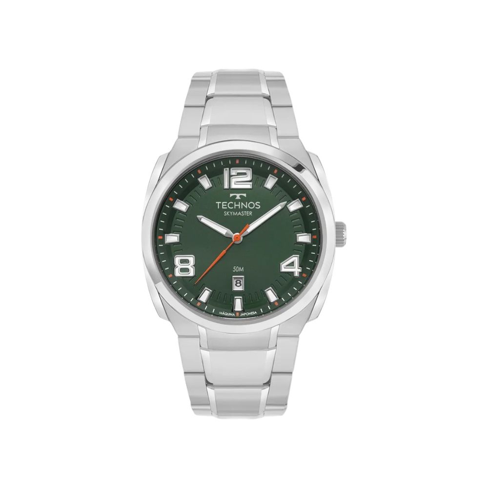 Com caixa de aproximadamente 44mm, o modelo apresenta dimensão que transmite presença sem comprometer o conforto. A função calendário agrega praticidade à rotina, enquanto a resistência à água de até 5 ATM permite contato com respingos e situações comuns do dia a dia. A linha Skymaster se caracteriza por unir estética esportiva e funcionalidade em modelos com construção sólida e versátil.